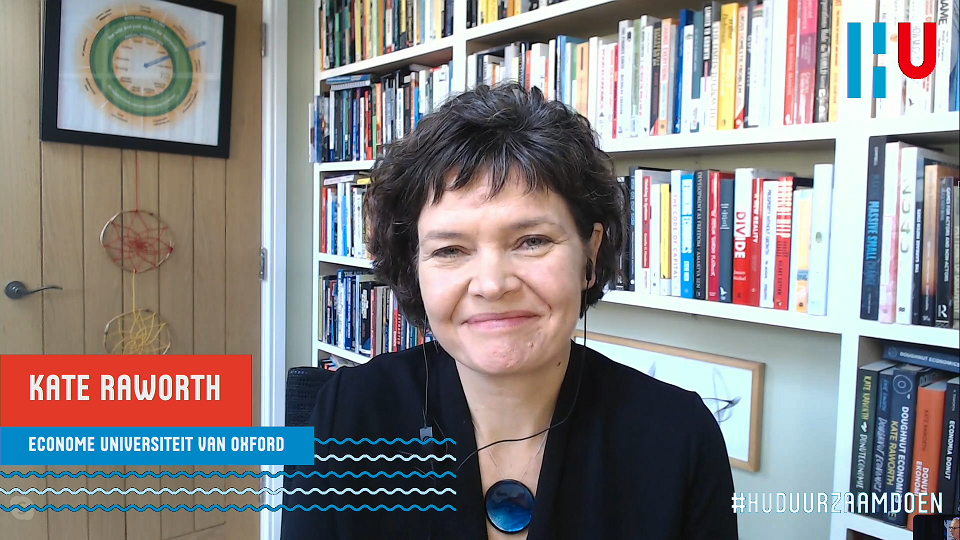 Een van de deelsessies was van de Hogeschool Utrecht, tijdens hun Dag van de Duurzaamheid. Ze hadden Brits econome van het Environmental Change Institute van de Universiteit van Oxford en auteur van het boek ‘De Donut Economie’, Kate Raworth digitaal op bezoek. Kate sprak over de Amsterdamse Donut Coalitie, een praktische vertaling van haar theorie op stadsniveau, die in samenwerking met gemeente Amsterdam tot stand is gekomen. Want we willen niet terug naar het oude normaal. Ze pleitte ervoor onze ‘groeidrang’ terugbrengen tot binnen de planetaire en sociale grenzen die haar donut weergeeft. We moeten niet gaan voor maximale winst, maar voor voldoende winst om ‘in business’ te blijven en respect voor onze omgeving te hebben.